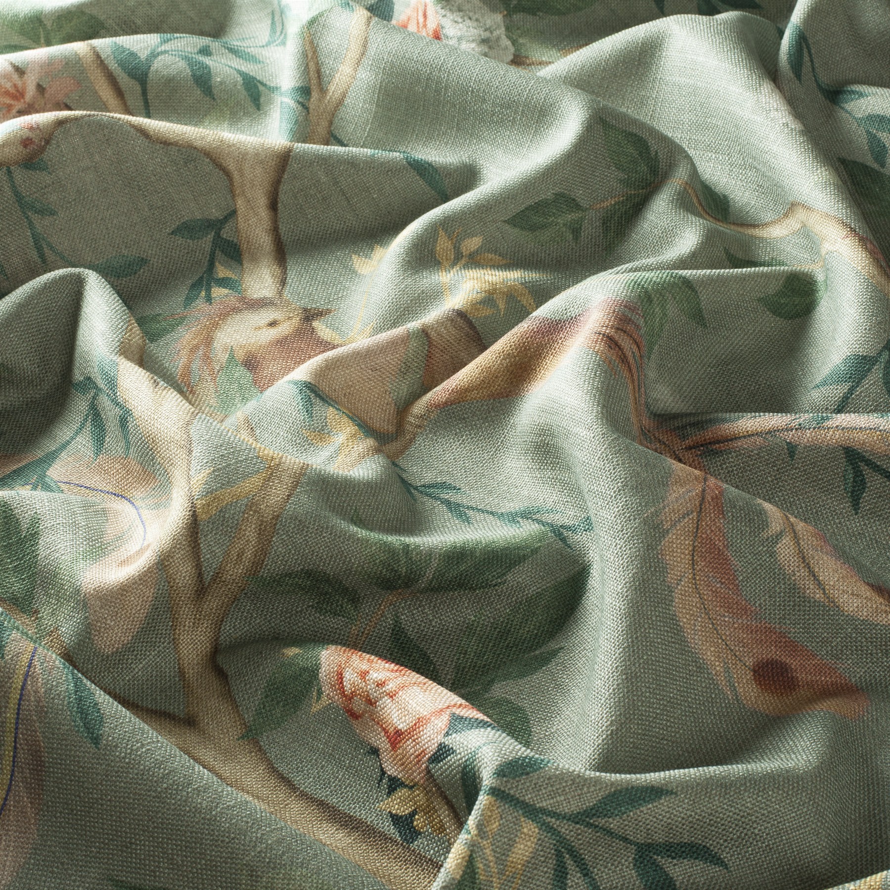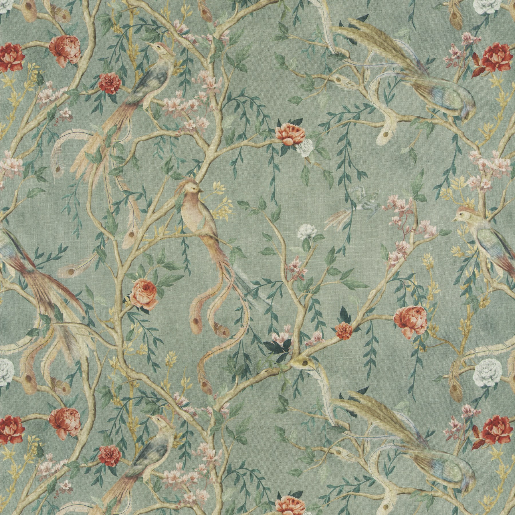 AVVENTURA este o țesătură decorativă spectaculoasă de la Jab Anstoetz, ce aduce în prim-plan stilul chinoiserie reinterpretat contemporan. Inspirată de interioarele aristocratice ale secolelor XVII–XVIII, această țesătură prezintă păsări stilizate, vegetație luxuriantă și motive asiatice imprimate cu măiestrie pe o bază textilă de tip tabby weave, ce amintește de pictura pe pânză.