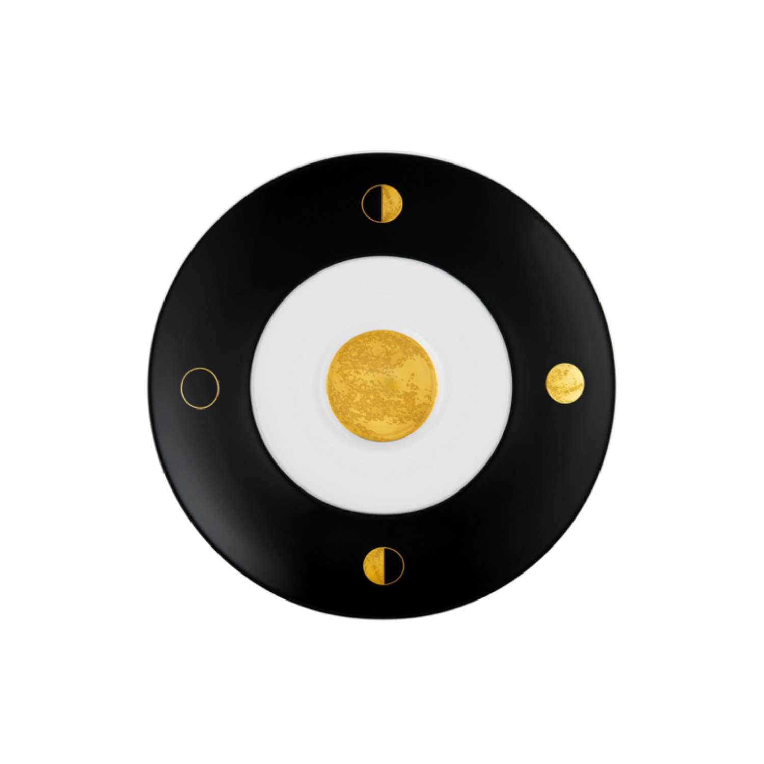 Prin designul CLAIR DE LUNE, atracția magică a lunii se transformă în numeroase compoziții extraordinare în negru, alb și auriu pe porțelanul foarte fin fabricat de FÜRSTENBERG.