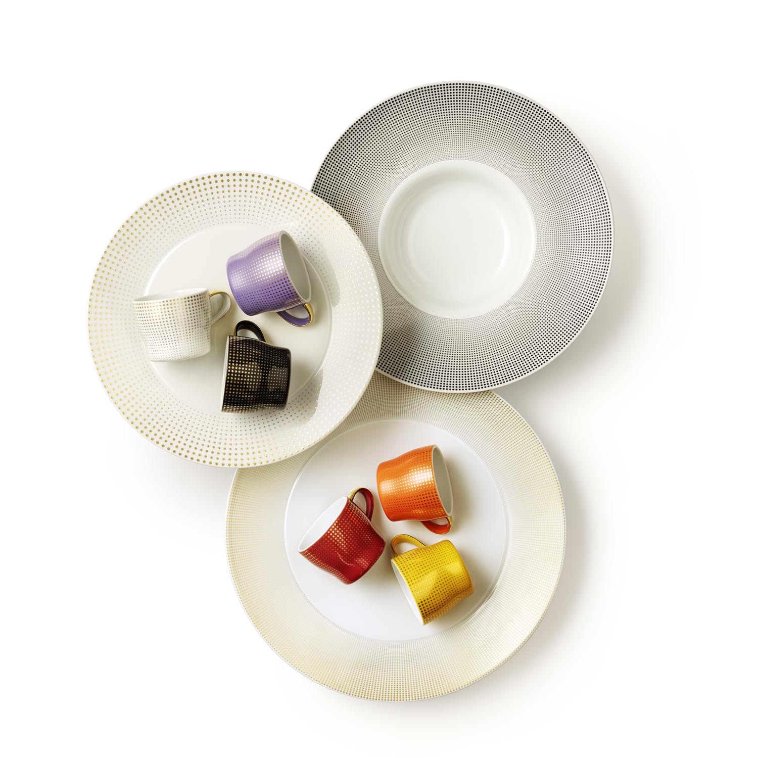 Dupa o cină festivă, sau poate pe o masă aranjata pentru servirea unei cafele de după-amiază - nuanțele vibrante, portocaliu, citron și violet ale cupelor espresso CLAIR DE LUNE vor adăuga un element surpriză colorat pe ansamblul decorativ al mesei.