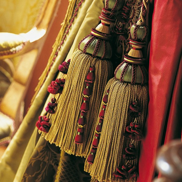 O piesa reprezentativa pentru colectia Antica by Houles, ce se evidentiaza prin impletituri complexe, fine, finisaje desavarsite si accesorizare bogata. Ambrassa cu doi ciucuri din franjuri bogati se distinge prin calitate exceptionala si atentie la detalii.