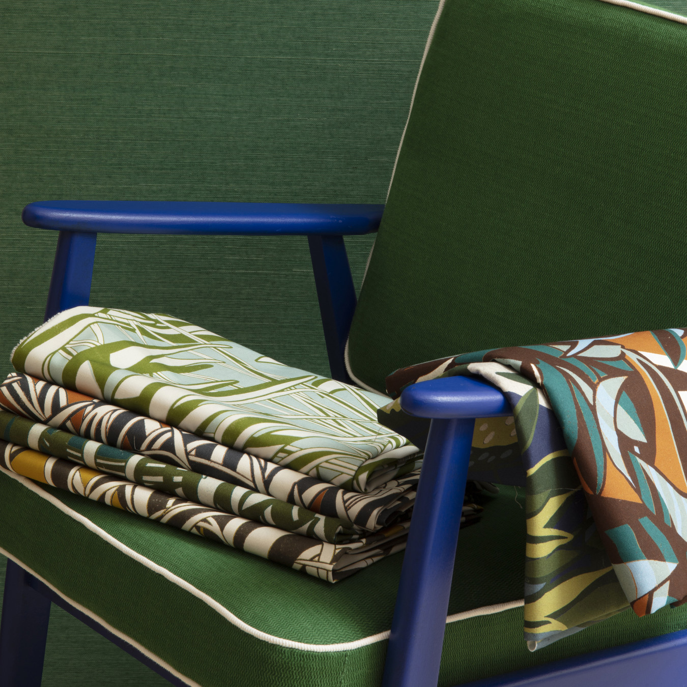 Țesătura ALOE de la Nobilis aduce un aer exotic și vibrant, printr-un imprimeu tropical cu frunze mari de aloe, desenate în nuanțe calde și reci. Motivele vegetale sunt conturate cu linii groase, subtile, care creează un contrast delicat cu fundalul și dau profunzime designului.