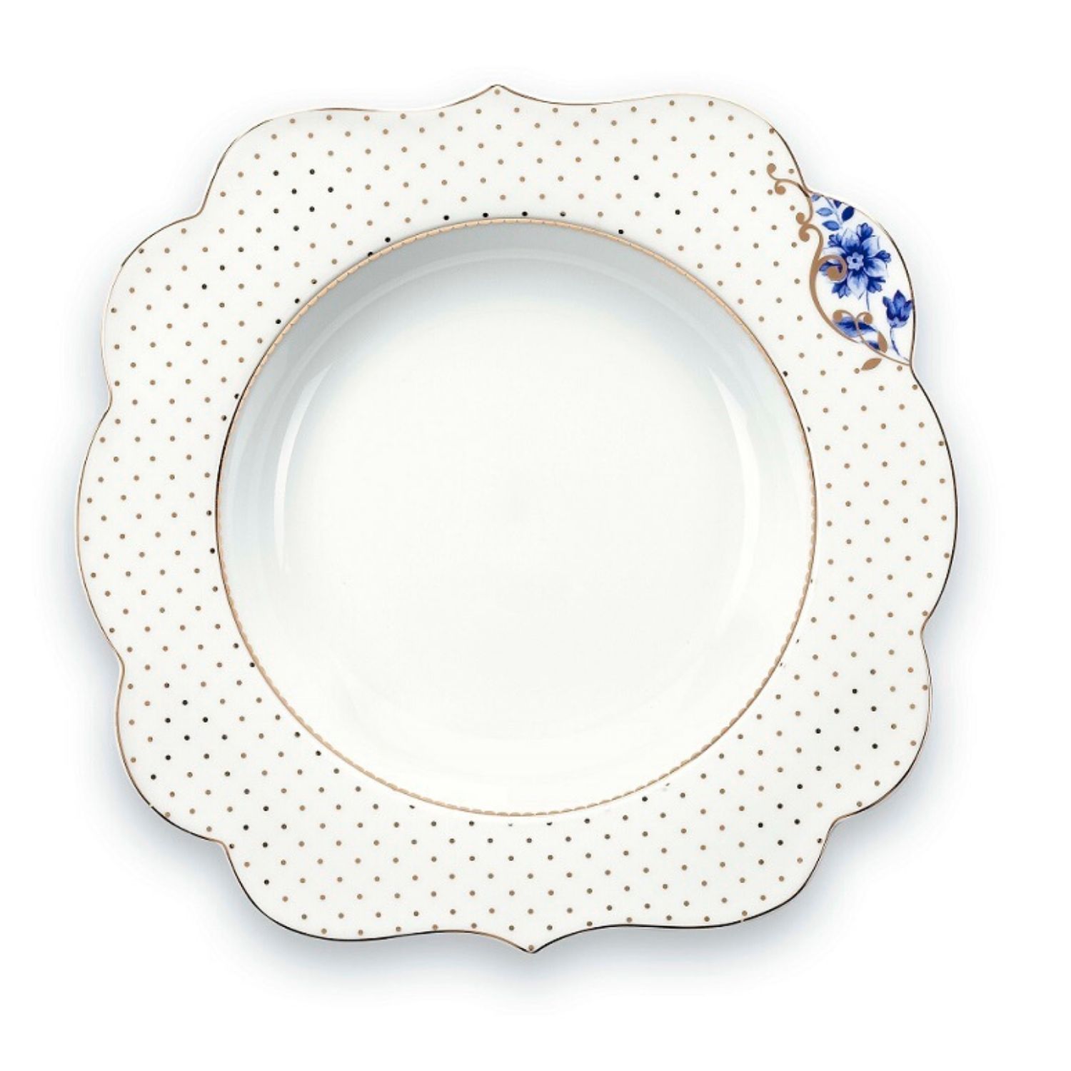 Set 6 farfurii pentru supa, decor floral si buline ROYAL WHITE
