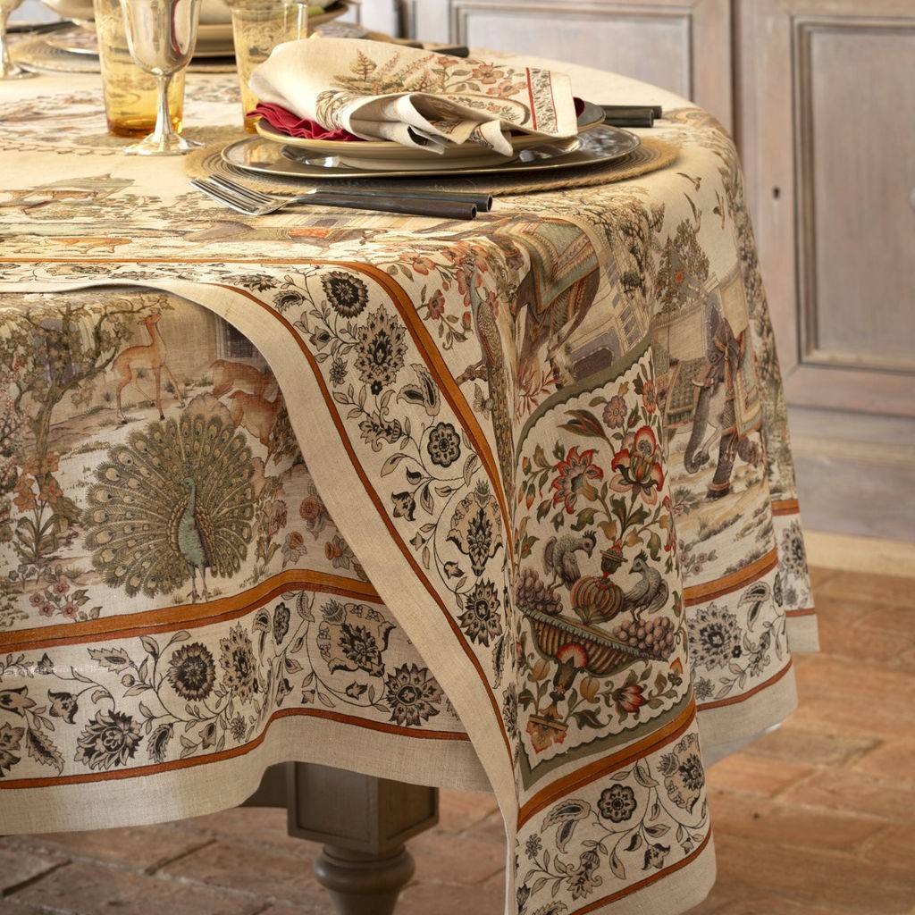 Transformă masa într-o tapiserie de poveste cu fața de masă MUDRA, realizată din in 100% natural de către Tessitura Toscana Telerie – Italia. Inspirată de estetica orientală, această față de masă evocă temple îndepărtate, domuri aurii și sate fermecate, unde timpul curge domol și frumusețea se dezvăluie în tăcere.