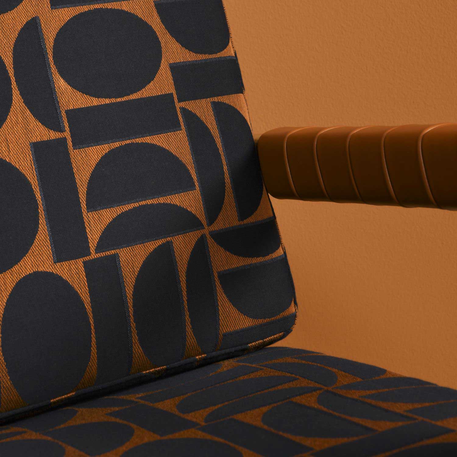 FJORD este o țesătură spectaculoasă cu inspirație retro scandinavă, definită de o rezoluție grafică puternică și motive geometrice de mari dimensiuni. Designul său combină cercuri și dreptunghiuri solide, reliefate printr-un joc de structuri țesute și accente în două tonuri de culoare, care pun în evidență formele cu eleganță și claritate vizuală.