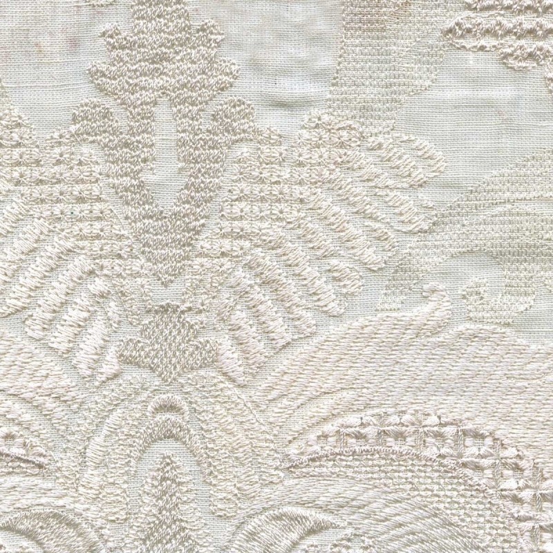 GALLIERA este o țesătură brodată elegantă, ce propune o reinterpretare contemporană a rafinamentului clasic. Inspirată de documente de arhivă, broderia este compusă din micro-motive fine, ce amintesc de delicatețea dantelei, redate cu un fir ușor lucios pe un fond din in natural, ton-sur-ton.