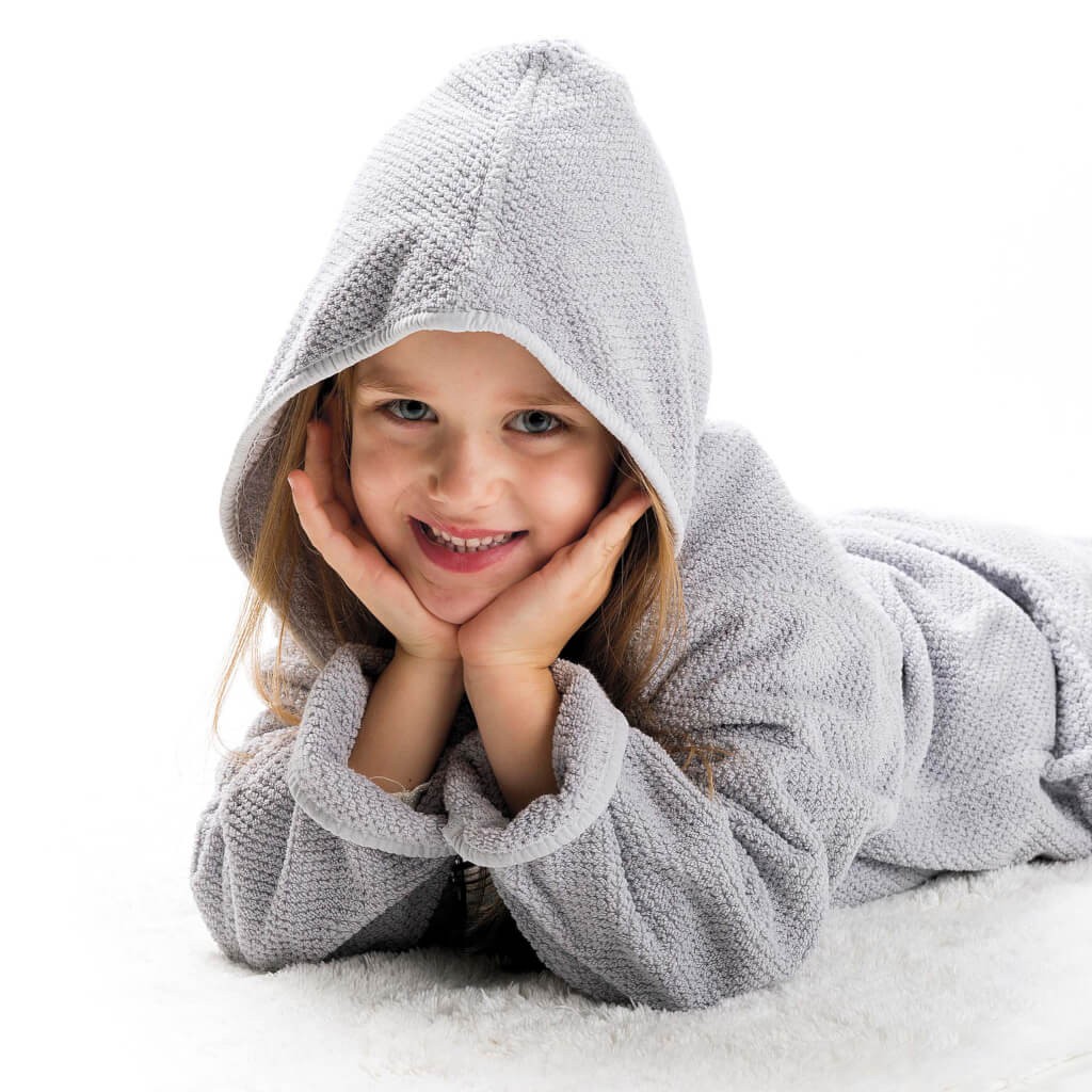 Halat de baie pentru copii, realizat 100% din bumbac pieptanat de cea mai buna calitate, cu o greutate de 550 gr/mp si cu un design tip gofra pentru o atingere luxoasa si exclusiva. Este foarte moale, catifelat si confortabil pentru corp. Pre-spalat pentru o capacitate de absorbtie maxima de la prima utilizare si pre-micsorat pentru a reduce contractia si pentru a nu-si modifica dimensiunile la spalat. De asemenea, are aplicat un tratament anti-pilling pentru senzatia de plus. Guler tip gluga. Este produs conform tuturor normelor OEKO-TEX® Standard 100, care asigura ca produsele textile nu prezinta nici un risc pentru sanatate si sunt tratate antibacterian. Nu se decoloreaza la spalat. A nu se folosi inalbitor. Nu se curata chimic. Spalare la masina la 60 ° C. Uscare normala. A se calca la o temperatura termica medie. Halatul de baie pentru copii BEE WAFFLE face parte din colectia cu acelasi nume care mai contine halate de baie pentru adulti, prosoape si covoare de baie. Ambalat in cutie cadou.