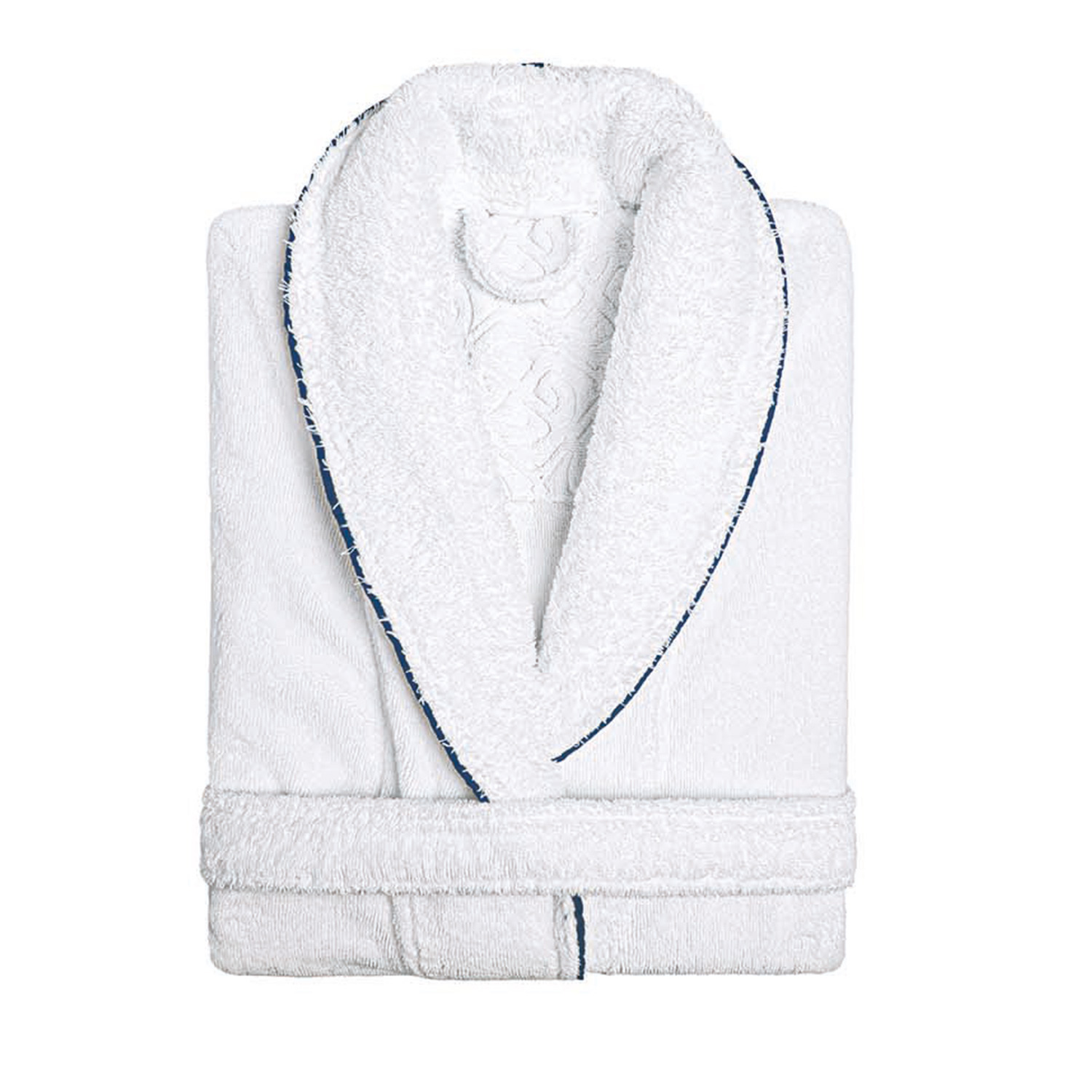 Halatele din colectia PORTOBELLO sunt extrem de moi si pufoase, realizate 100% din bumbac egiptean GIZA si sunt decorate cu o bordura fina bleumarin sau aurie.