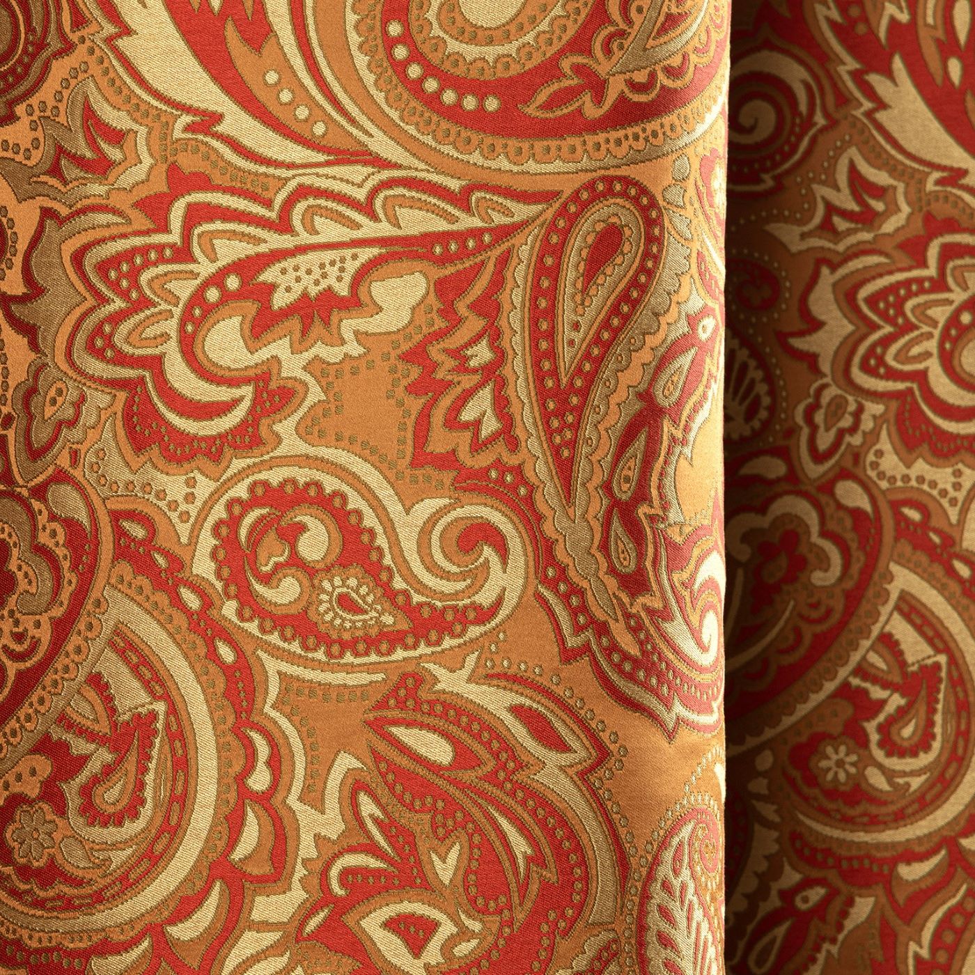 KASHMIR este o țesătură lampas cu motive paisley, inspirată din rafinamentul clasic reinterpretat într-o cheie contemporană. Desenul ornamental, bogat și fluid, creează un ritm vizual elegant, care aduce profunzime și caracter oricărui interior, fără a deveni ostentativ.