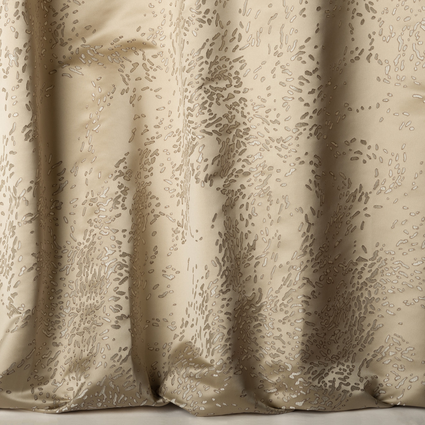 NUÉES este o țesătură decorativă satinat, ce impresionează printr-un design amplu și aerat, inspirat de forma norilor plini de picături. Modelul se desfășoară poetic pe un fundal satinat delicat, creând un joc subtil de lumini și umbre, perfect pentru a aduce senzația de lejeritate și eleganță în orice interior.