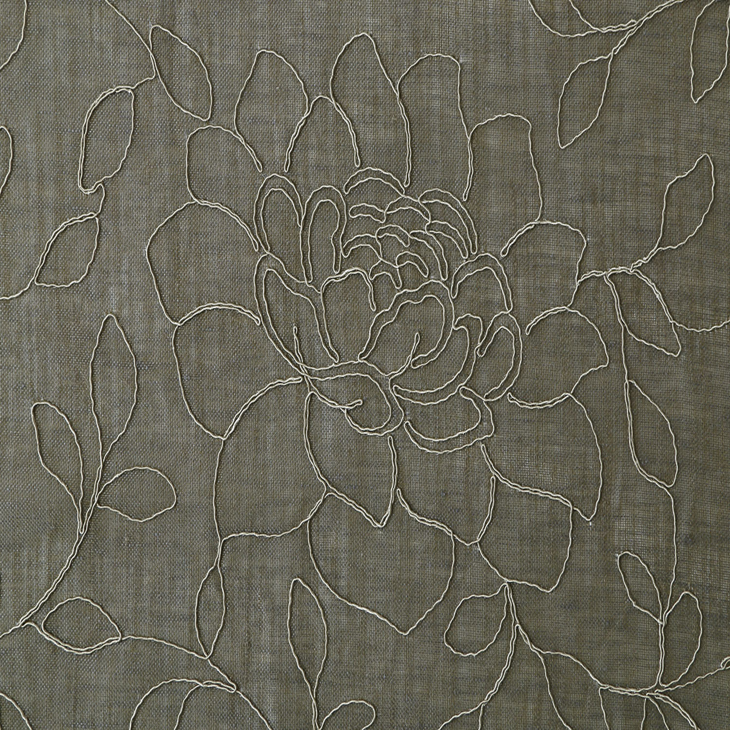 Motivul floral generos și fluid este realizat printr-o broderie elaborată, cu o bordură spectaculoasă de flori și frunze în partea inferioară, care continuă apoi pe toată înălțimea perdelei, creând un efect vizual rafinat și sofisticat.