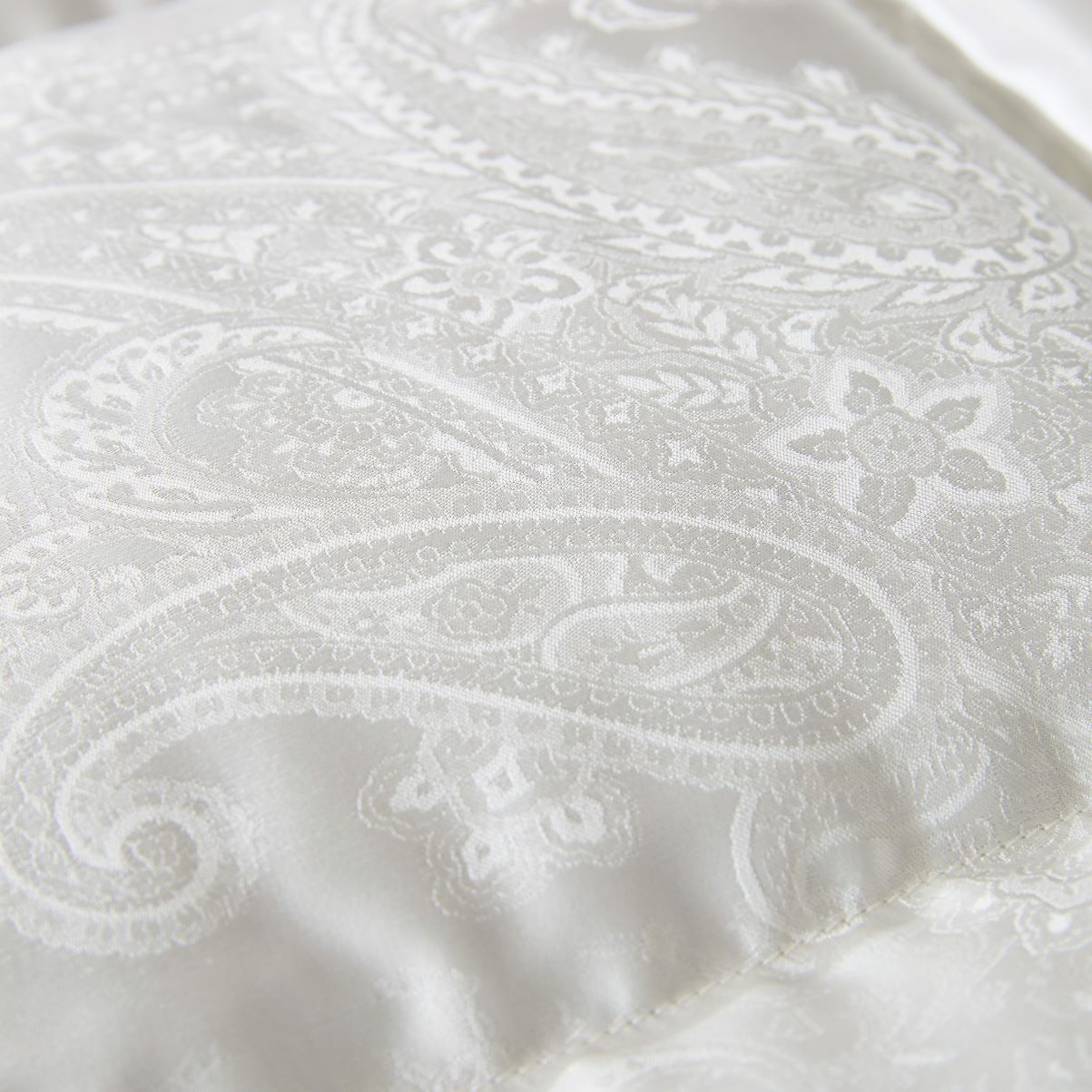 Husa pilotei THE EIDER Vară 4.5 Tog 135 × 200 este disponibilă în trei variante rafinate: mătase gri-ash 100%, mătase crem paisley 100% sau bumbac alb fin 100%.