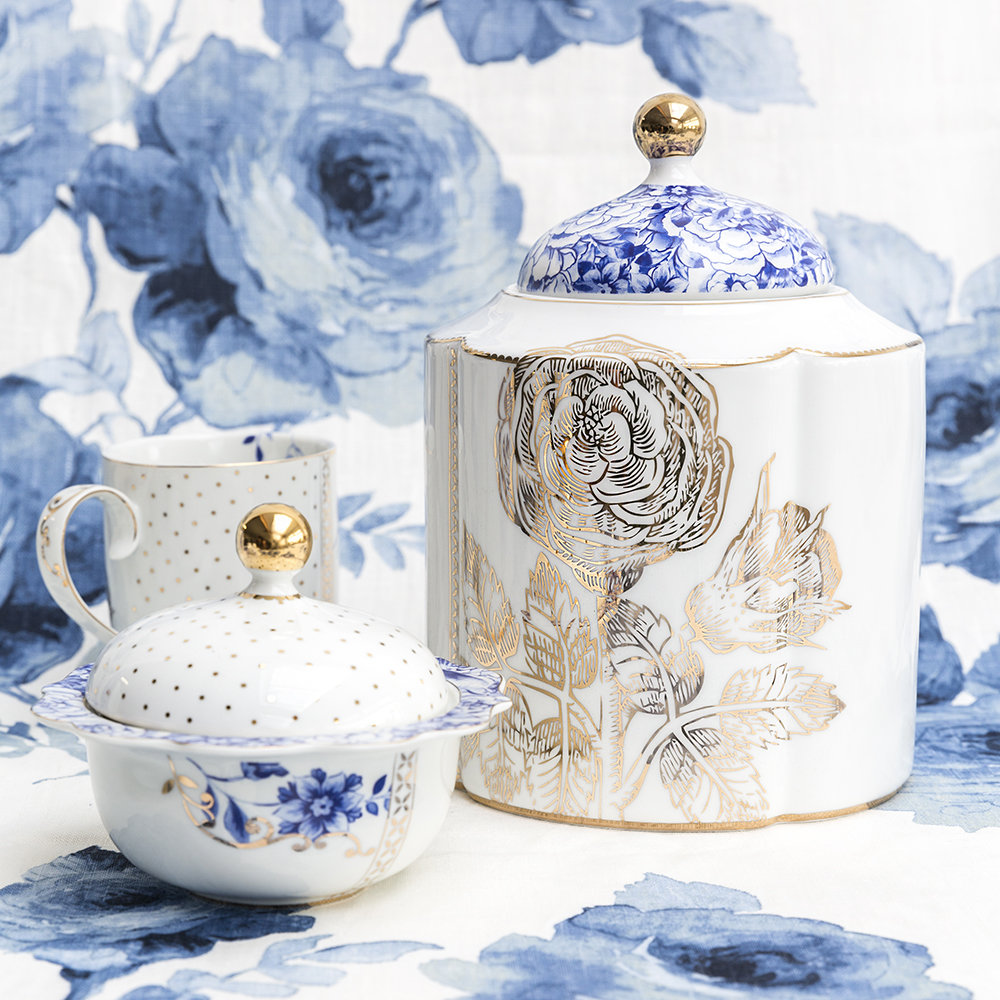 Borcan pentru biscuiti, decor floral ROYAL WHITE