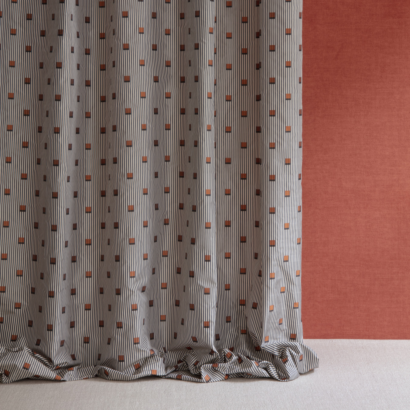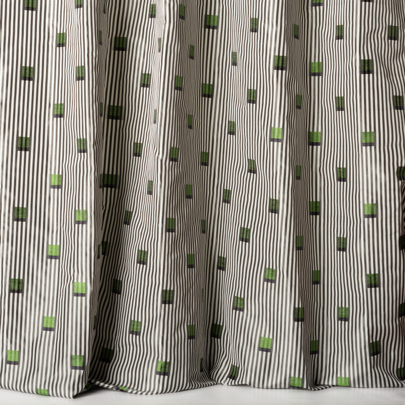 SHIMA este o draperie rafinată de tip tafta, inspirată de estetica urbană contemporană, care îmbină dungi fine și mici pătrate „lancé découpé” dispuse în două tonuri subtile. Acest design geometric delicat și modern aduce un aer arhitectural și sofisticat în orice spațiu.