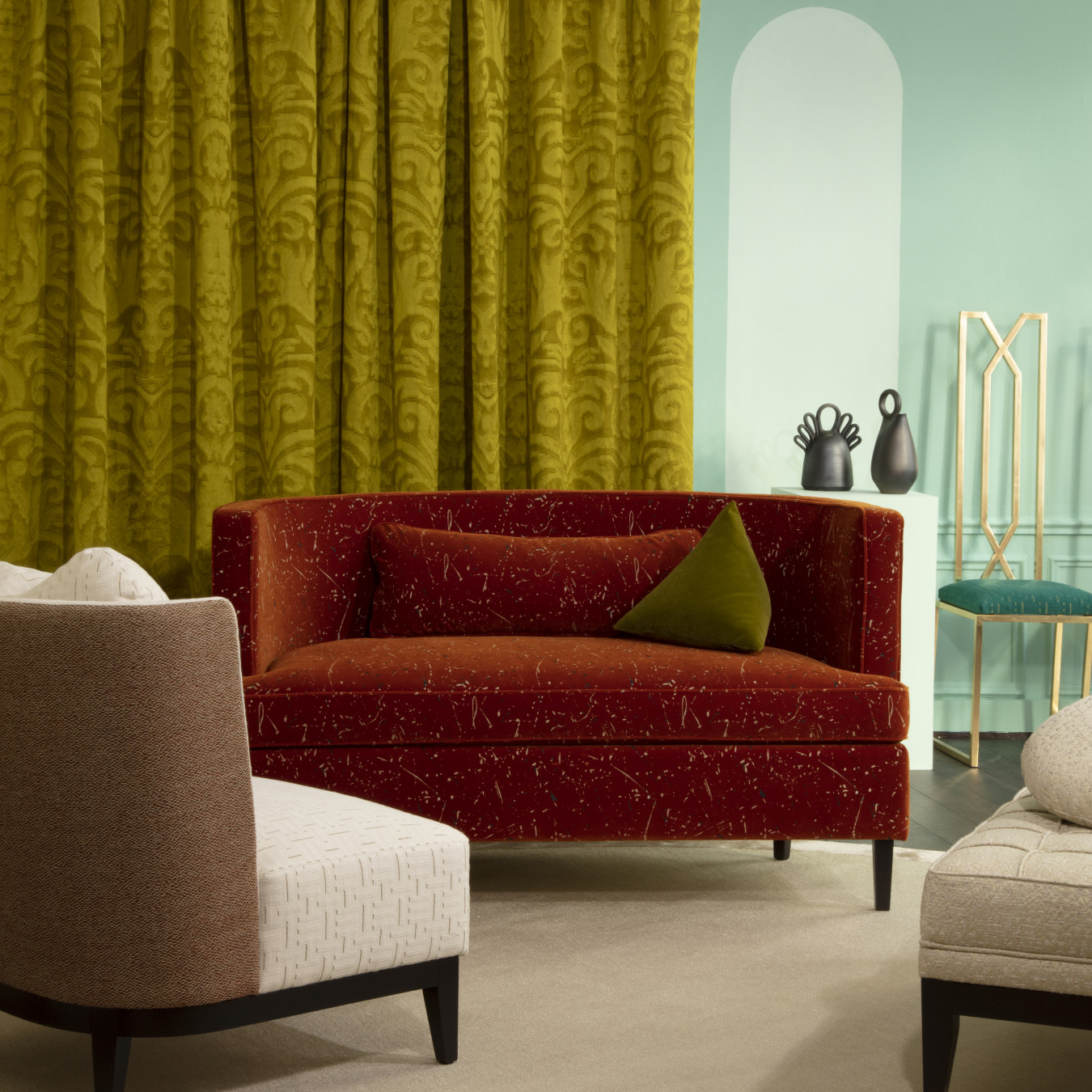 Țesătura de tip tafta are o textură ușor lucioasă și structurată, oferind volum și o cădere frumoasă, dar lejeră. Modelul discret face ca SHIMA să fie ideală pentru interioare moderne, minimaliste sau cu influențe industrial-chic, unde eleganța rezidă în detaliile fine.