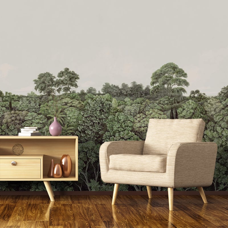 Cu Tapetul panoramic CANOPY, pereții devin o poveste vizuală în care natura și arta se întâlnesc, evocând liniștea unei păduri și rafinamentul tapiseriilor de odinioară.