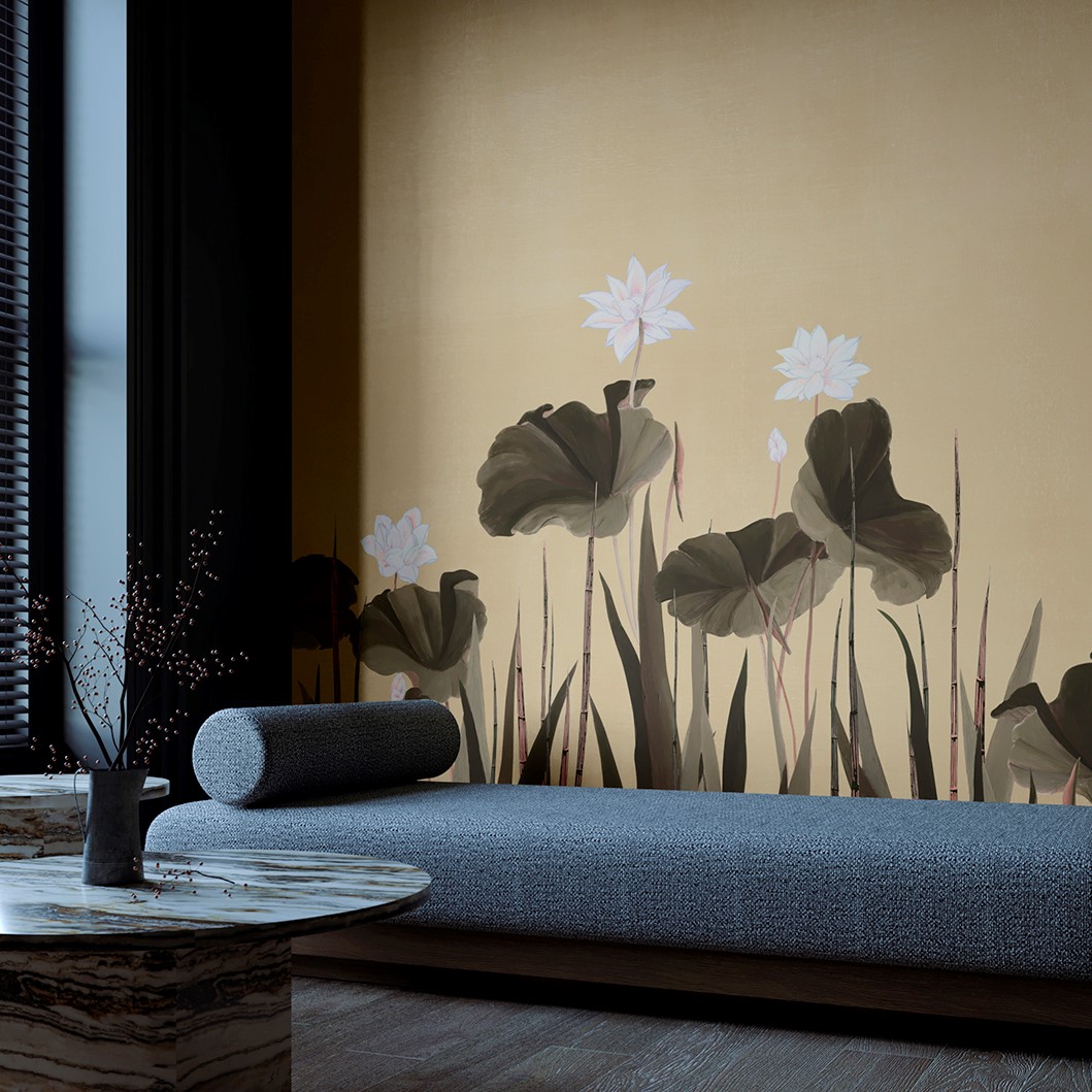 NAÏADES este un tapet panoramic de lux, creat în Franța, inspirat de nuferii lui Claude Monet și atmosfera poetică a grădinilor acvatice. Designul pictural cu flori albe delicate, ce plutesc pe ape liniștite, evocă armonia dintre artă și natură, transformând peretele într-o scenă de vis cu o eleganță atemporală.