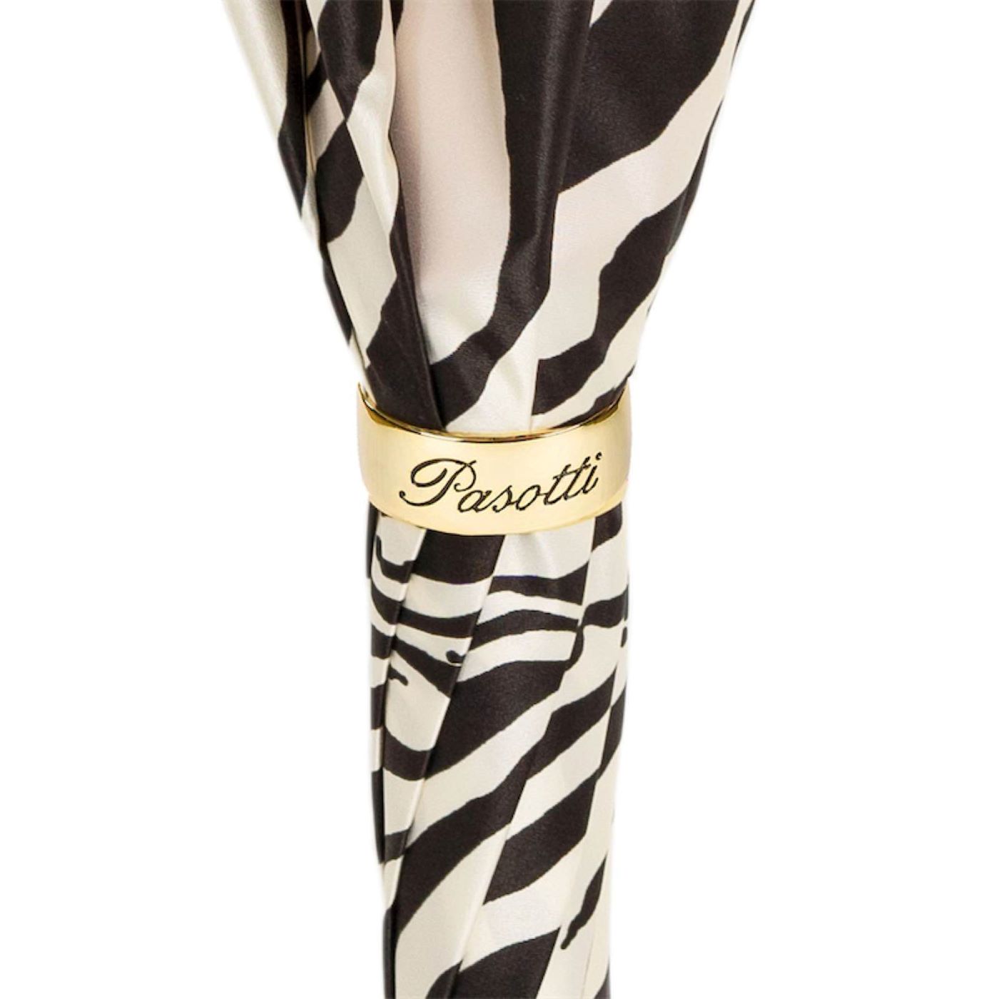 Umbrela AURETA X PASOTTI Zebra Lion este o piesă statement de lux, lucrată manual în Italia, care reunește stilul extravagant al Auretei cu măiestria artizanală Pasotti. Exteriorul său spectaculos cu imprimeu zebră alb-negru este completat de un interior roșu intens, ce adaugă un contrast pasional și o notă de dramatism sofisticat.
