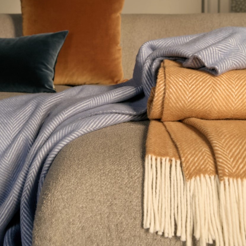 Designul reinterpretat al clasicului model herringbone (os de pește) adaugă un aer contemporan și rafinat, iar franjuriI lungi decorativI completează eleganța pledului. Datorită dimensiunilor sale mari, acest plaid invită la relaxare și transformă orice spațiu într-un refugiu de confort și stil.